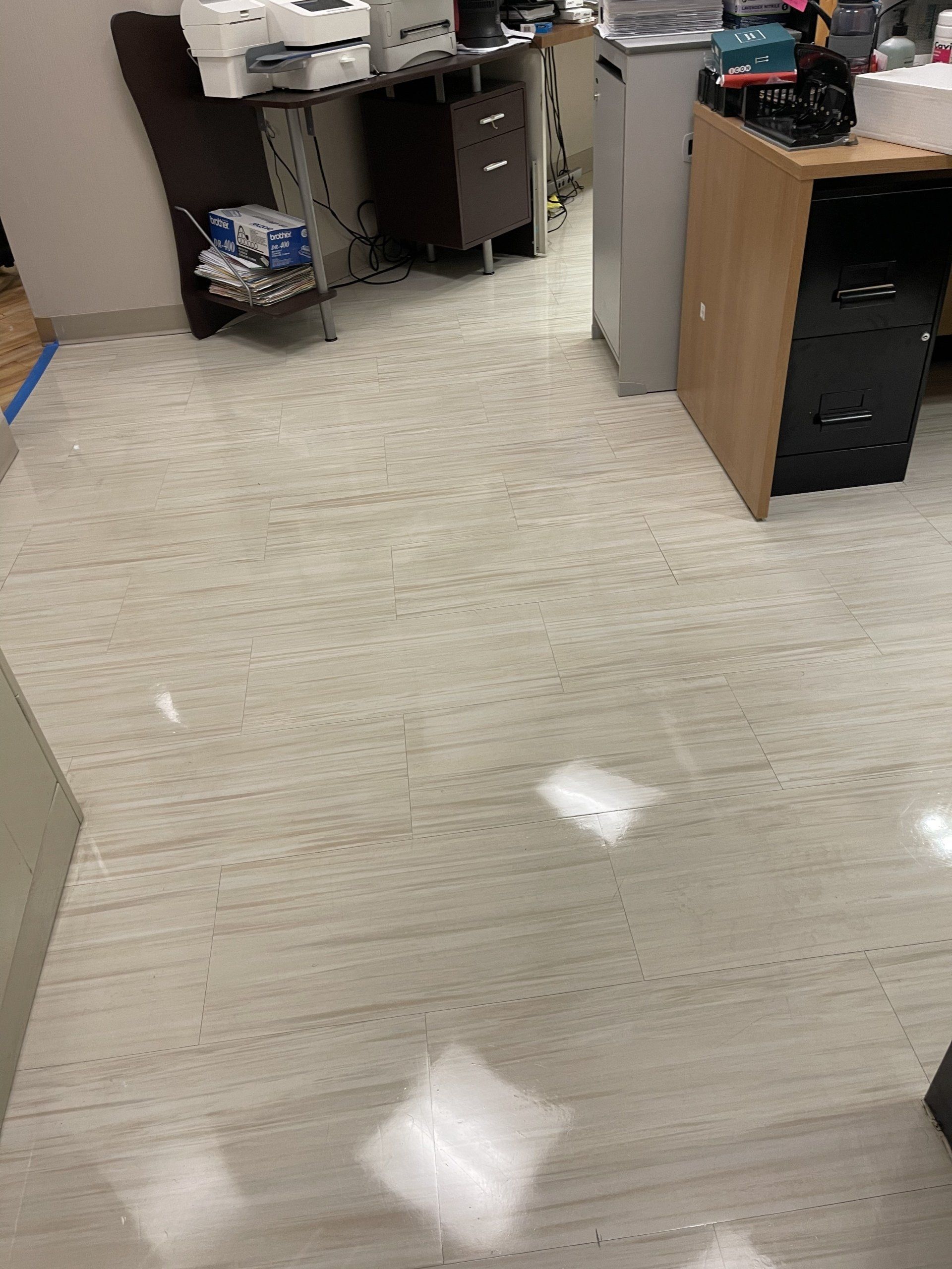 Buffing, waxing and maintenance in floors.